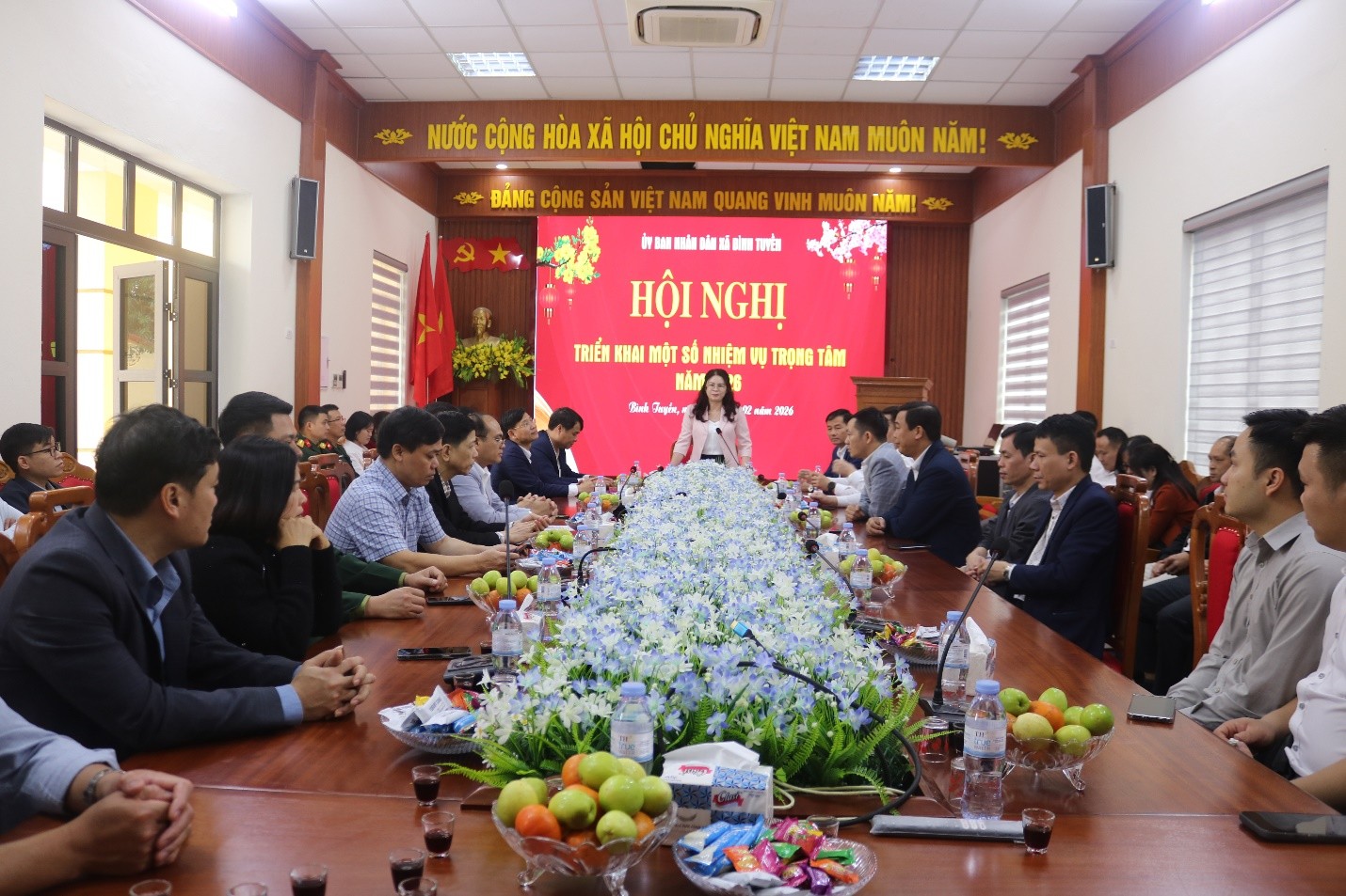 Dự hội nghị có đồng chí Trần Thị Thanh Tâm – Phó Bí thư Đảng ủy, Chủ tịch UBND xã; đồng chí Dương Văn Thắng...