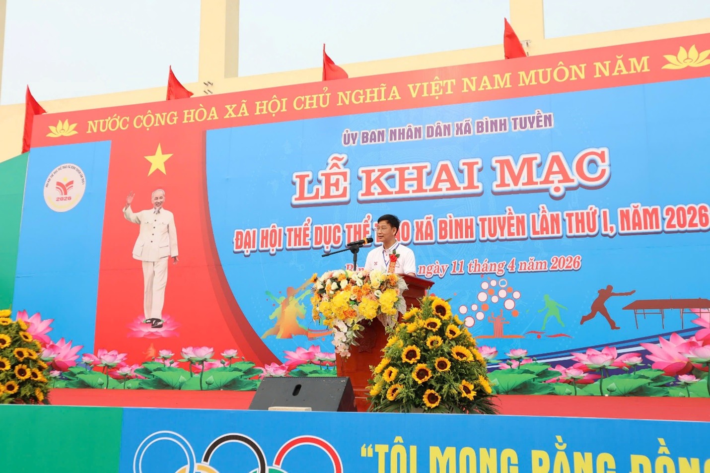 Phát biểu khai mạc, đồng chí Dương Văn Thắng – Phó Chủ tịch UBND xã nhấn mạnh vai trò quan trọng của thể dục thể thao trong việc nâng cao sức khỏe, đời sống tinh thần của Nhân dân; đồng thời ôn lại lời dạy của Chủ tịch Hồ Chí Minh: “Mỗi người dân yếu ớt, tức là làm cho cả nước yếu ớt một phần, mỗi người dân khỏe mạnh, tức là góp phần làm cho cả nước mạnh khỏe. Dân cường thì nước thịnh…”.