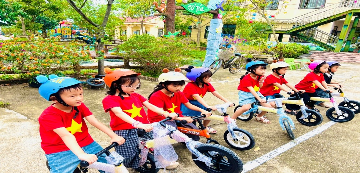 Đặc biệt, phần thi “đua xe thăng bằng” đã trở thành hoạt động được mong chờ nhất. Những chiếc xe nhỏ xinh cùng những “tay đua nhí” tự tin, khéo léo đã tạo nên những màn thi đấu hấp dẫn. Trẻ không chỉ được rèn luyện khả năng giữ thăng bằng mà còn phát triển sự tự tin, mạnh dạn khi tham gia hoạt động tập thể.