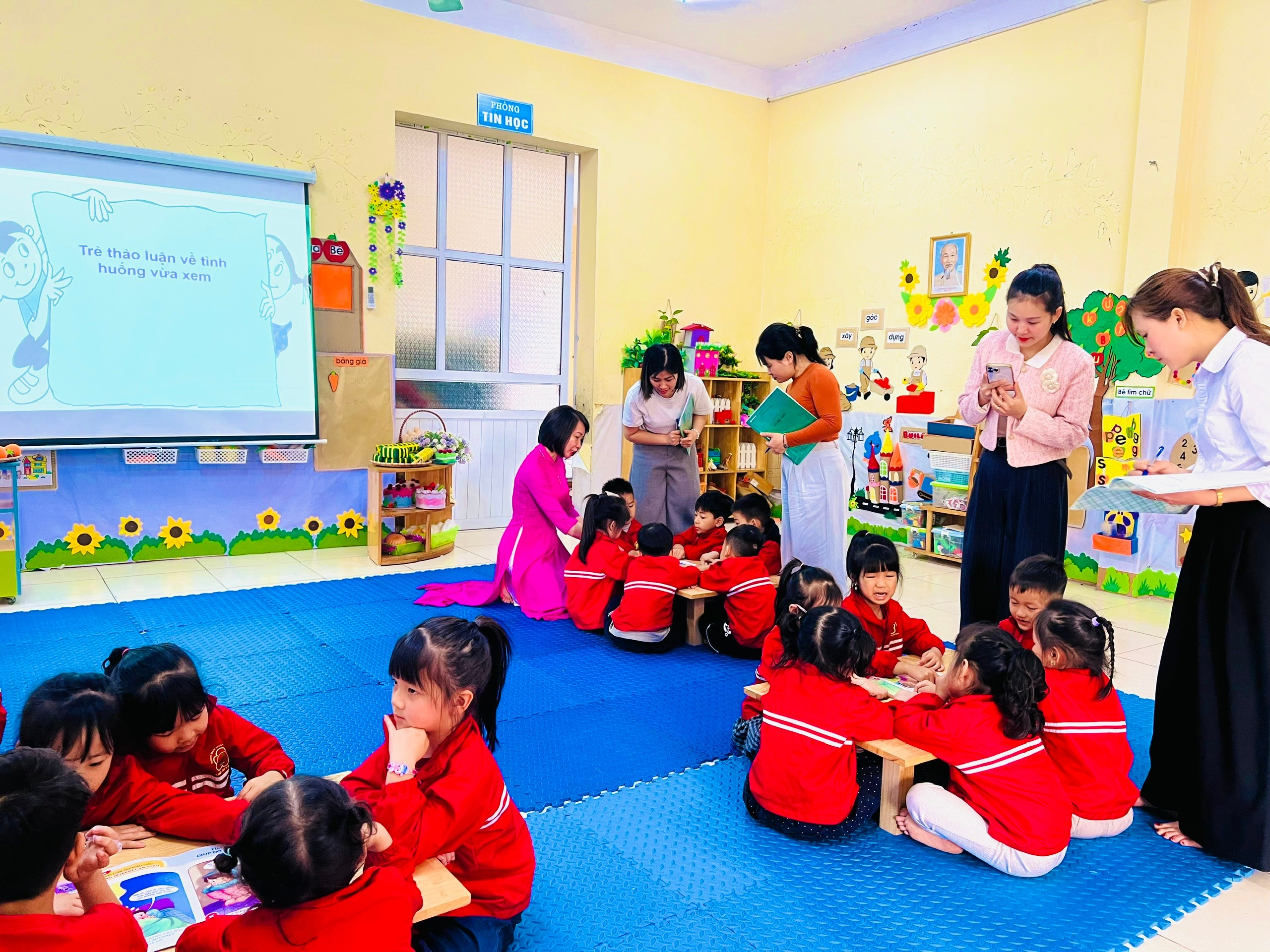 Trưởng mầm non Hoa Phượng tổ chức sinh hoạt chuyên môn theo nghiên cứu bài học ở bậc học mầm non