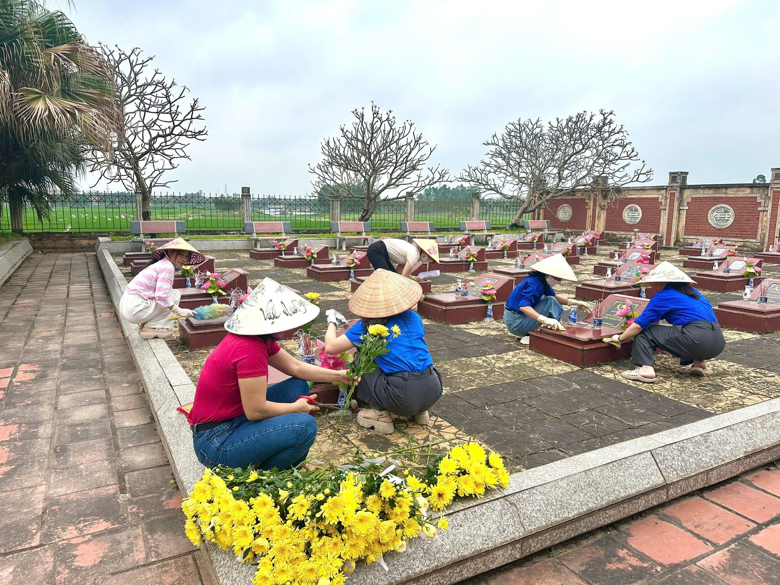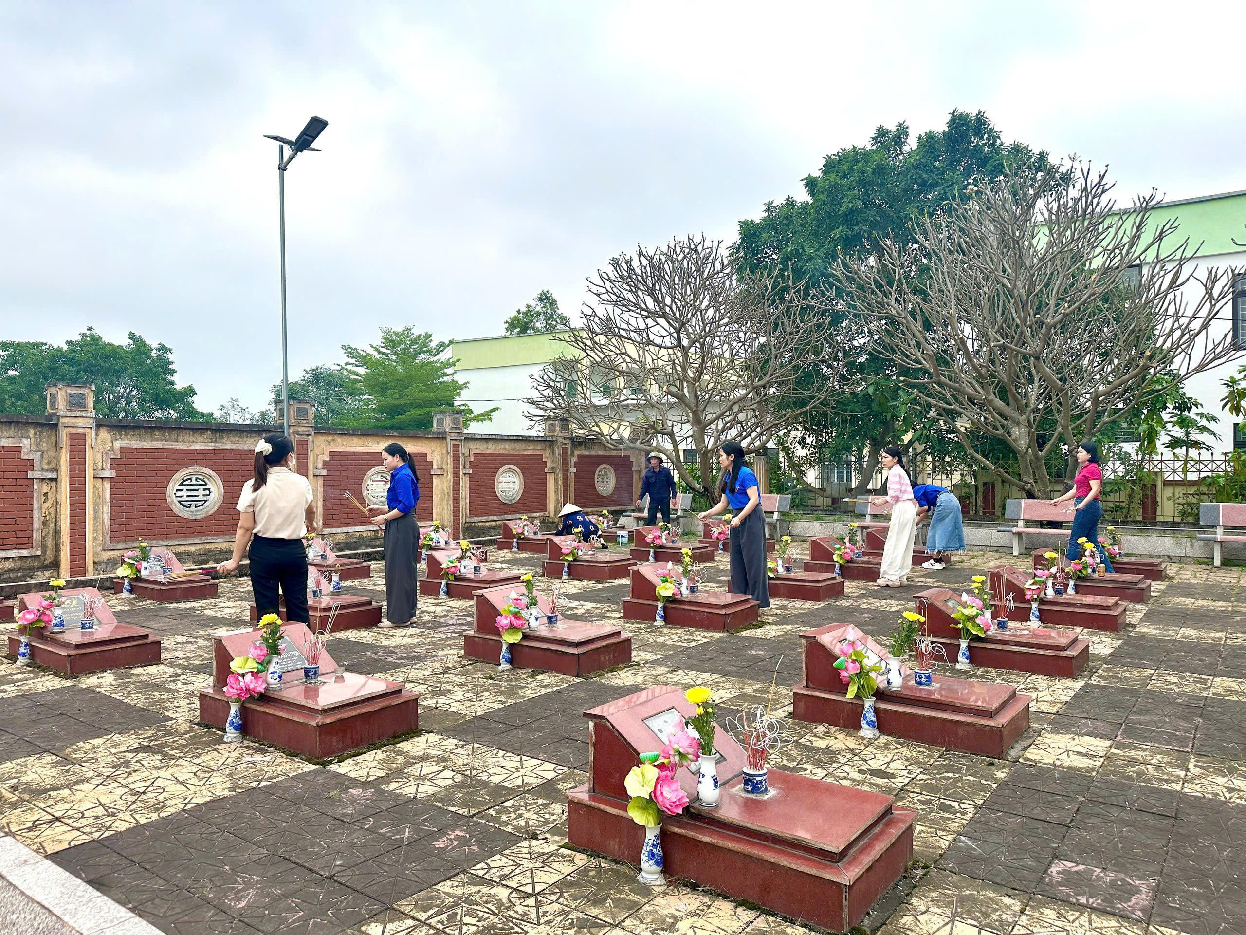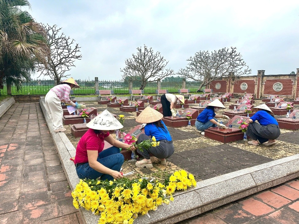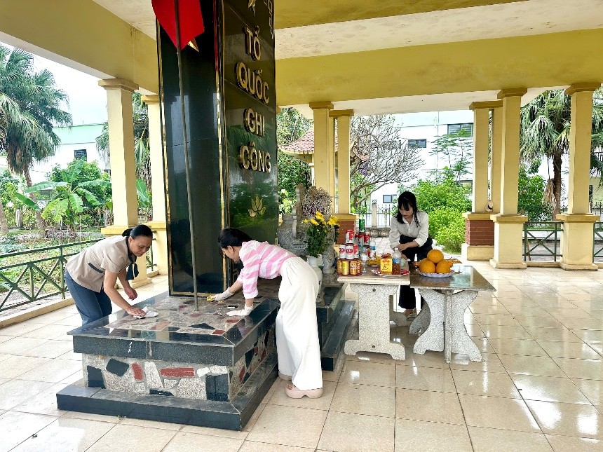 Trong không khí trang nghiêm và thành kính, các đoàn viên, cán bộ, giáo viên đã dâng hương tưởng niệm, bày tỏ lòng biết ơn sâu sắc đối với các anh hùng liệt sĩ – những người đã anh dũng hy sinh vì độc lập, tự do của Tổ quốc. Ngay sau lễ dâng hương, tập thể nhà trường đã tích cực tham gia dọn dẹp vệ sinh, chăm sóc khuôn viên nghĩa trang, góp phần giữ gìn cảnh quan sạch đẹp, thể hiện đạo lý “Uống nước nhớ nguồn” của dân tộc.